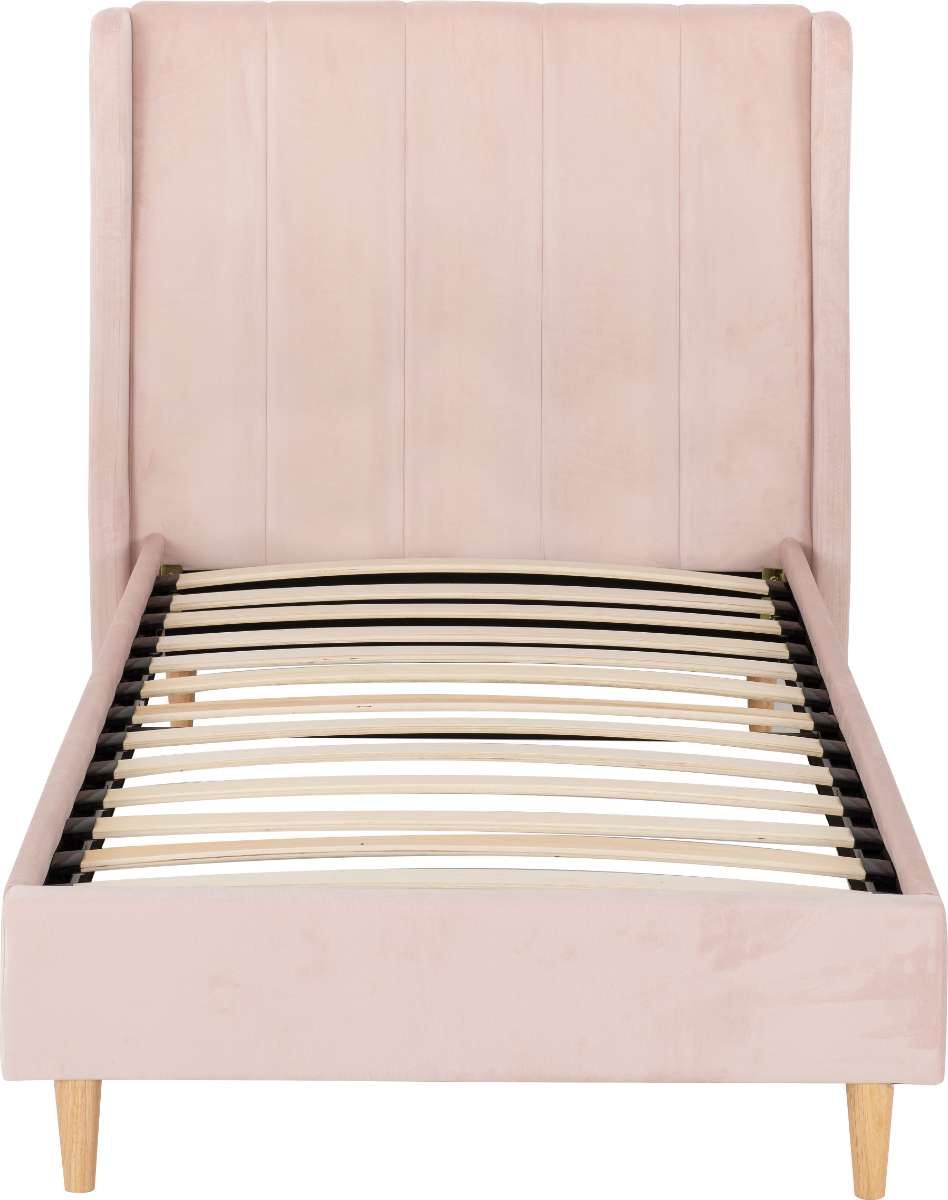 Whether you're looking to create a chic retreat or a cozy guest room, the Amelia 3' Bed in pink velvet is the perfect choice. Experience the perfect blend of style and comfort today!