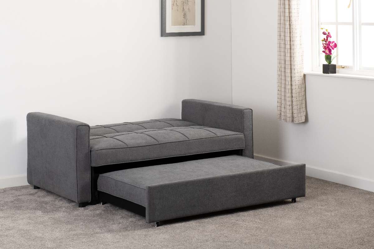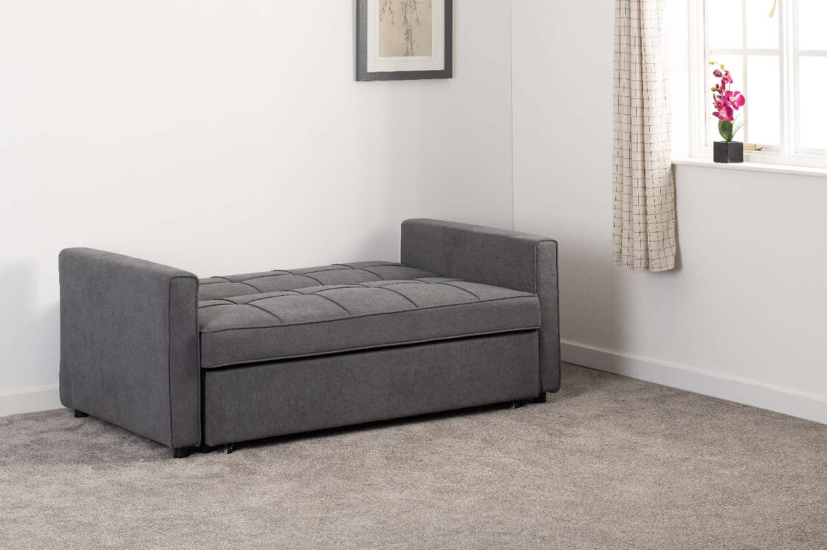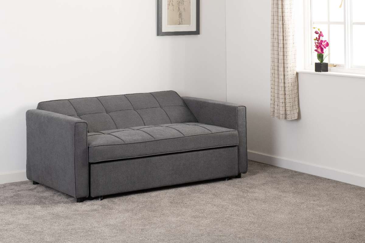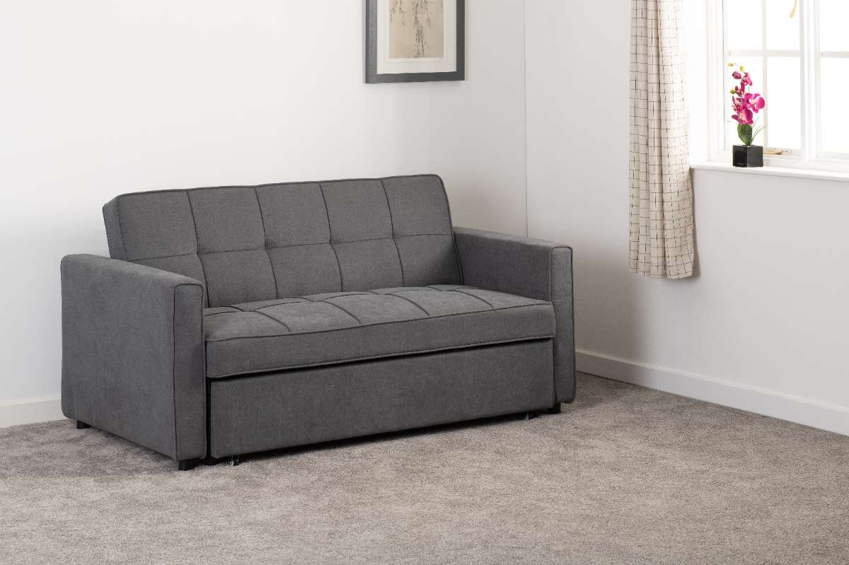 Introducing the Astoria Sofa Bed, a stylish and versatile addition to any living space. Upholstered in a chic dark grey fabric, this sofa bed is perfect for both lounging and accommodating overnight guests.