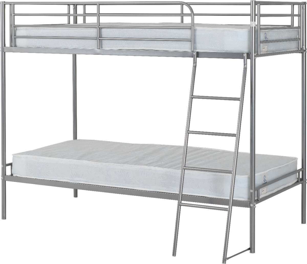 Looking for a stylish and space-saving solution for your child's bedroom? The BRANDON 3' Bunk Bed in a sleek silver finish is the perfect choice! Designed with both comfort and functionality in mind, this bunk bed offers a cozy sleeping space while maximizing your room's layout.