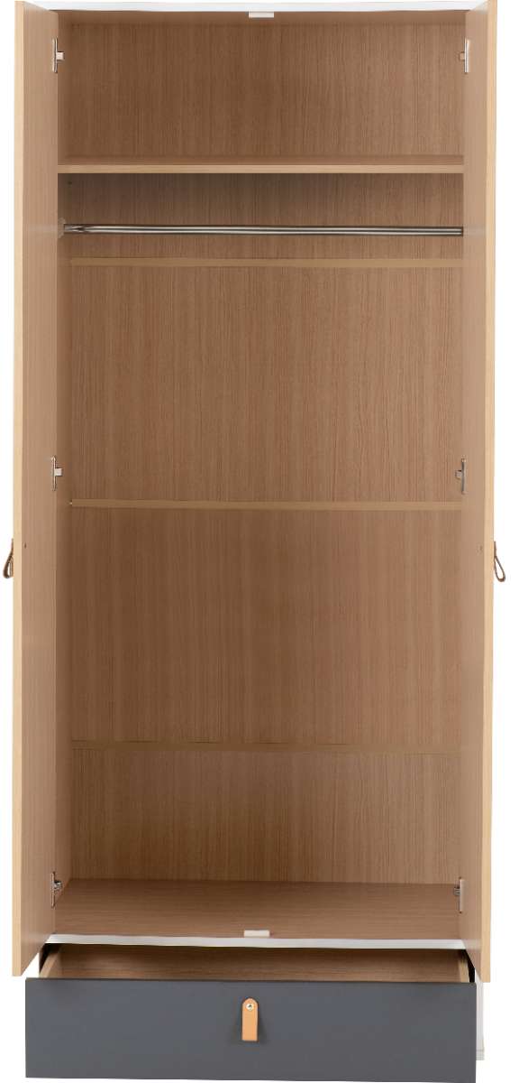 Introducing the stylish and functional Brooklyn 2 Door 1 Drawer Mirrored Wardrobe, designed to elevate your bedroom space! With its beautiful oak effect and sleek grey finish, this wardrobe combines modern aesthetics with practical storage solutions.