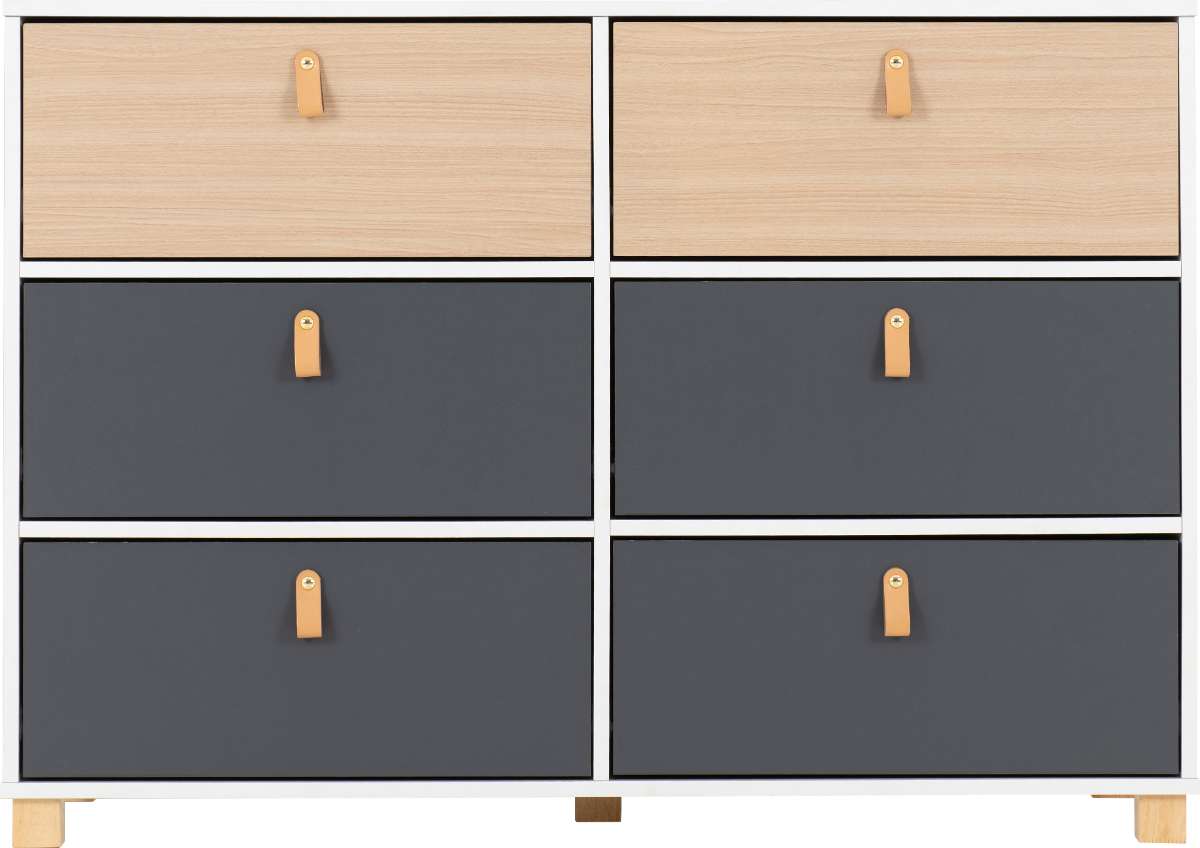 Introducing the Brooklyn 6 Drawer Chest, a stylish and functional addition to your home. This beautiful chest combines a warm oak effect with a modern grey finish, making it a perfect fit for any bedroom or living space.