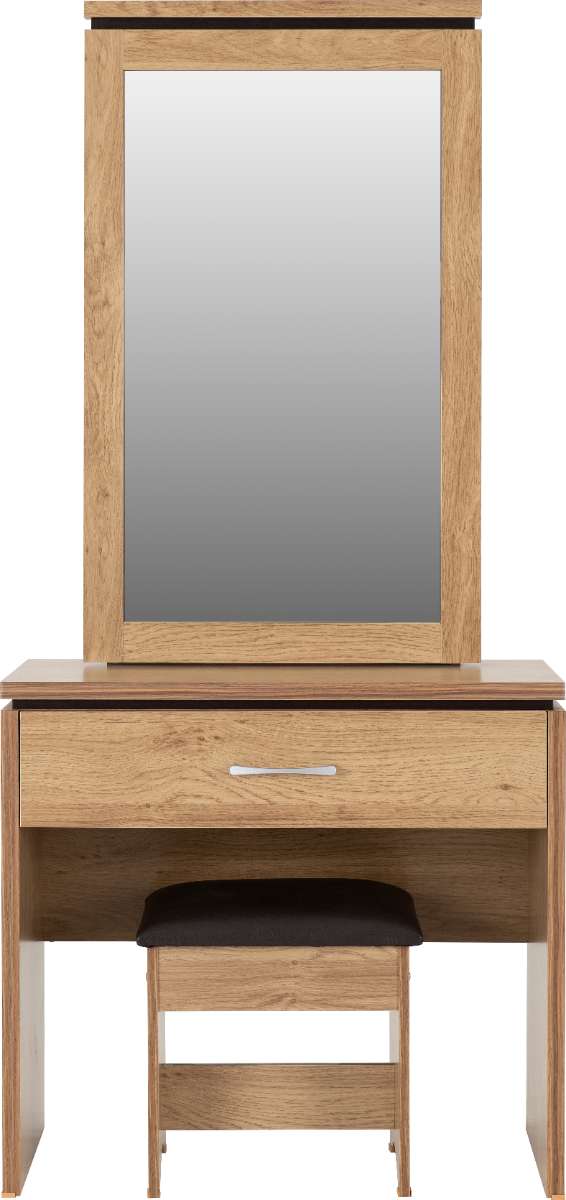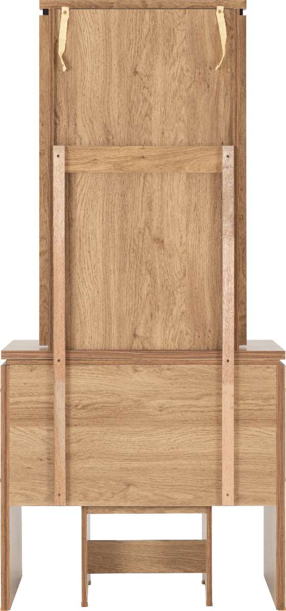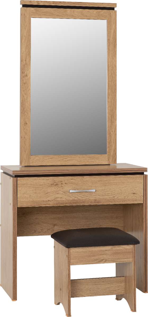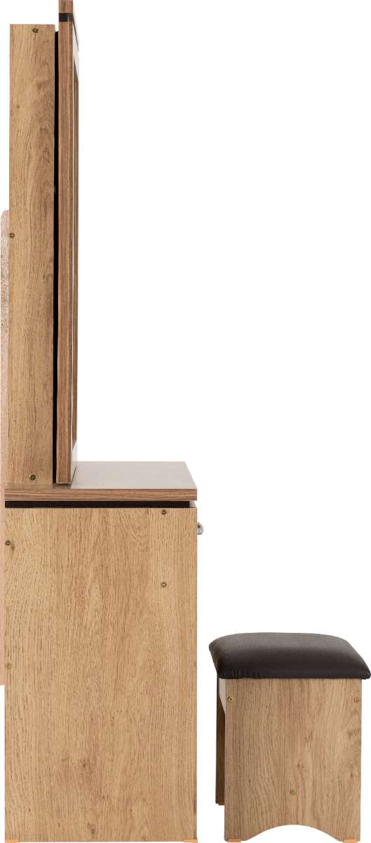 Introducing the Charles 1 Drawer Dressing Table, a stylish addition to your bedroom or dressing area. This beautifully designed table features a warm oak effect veneer that adds a touch of elegance to any space.