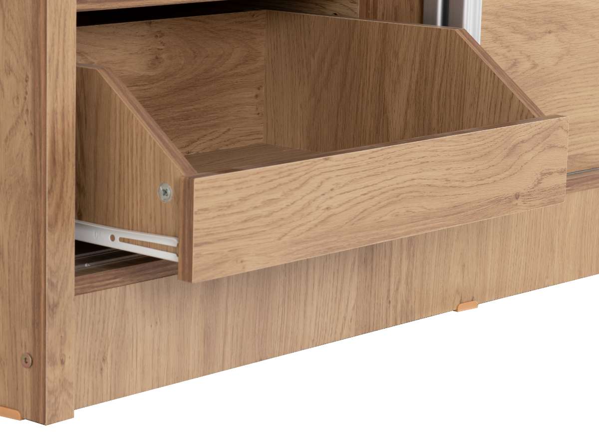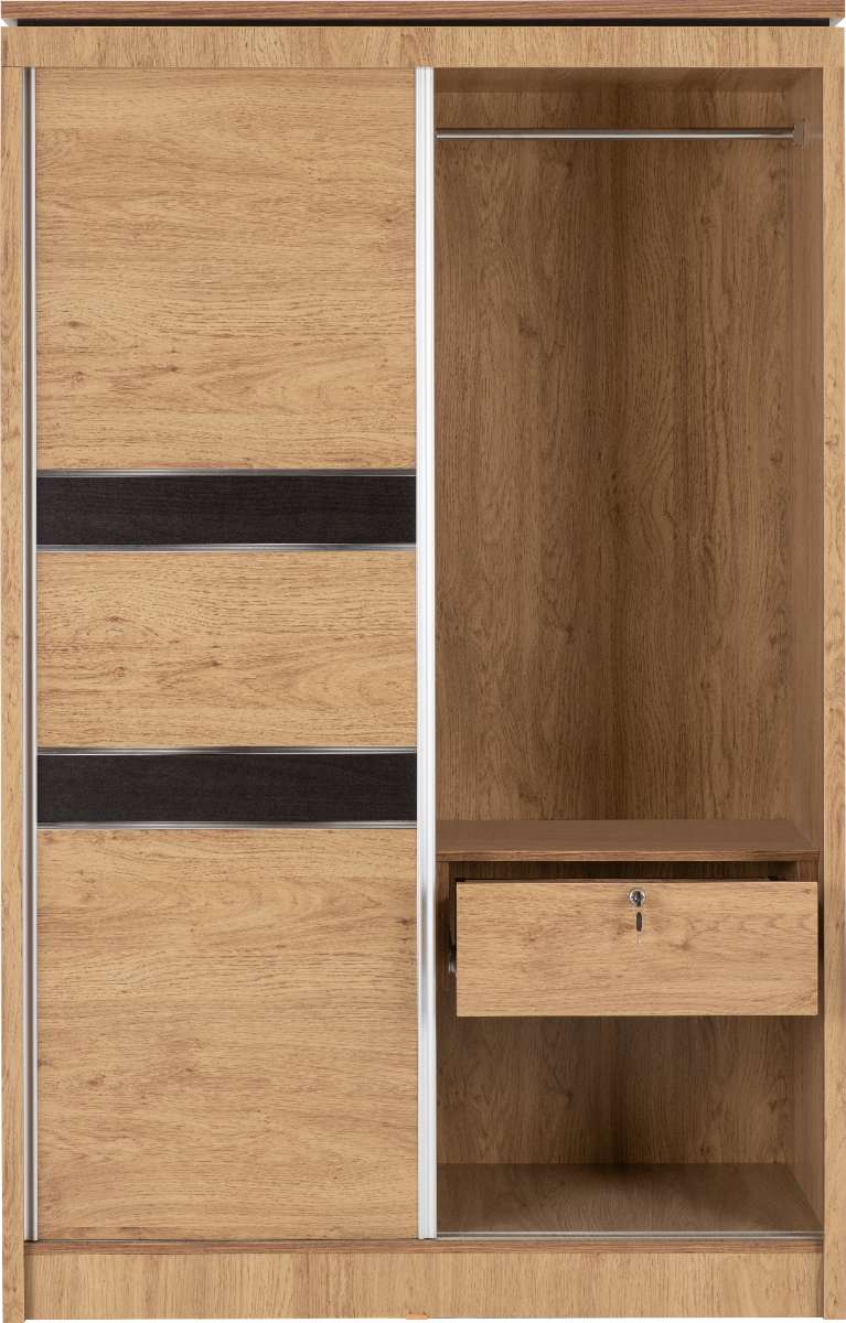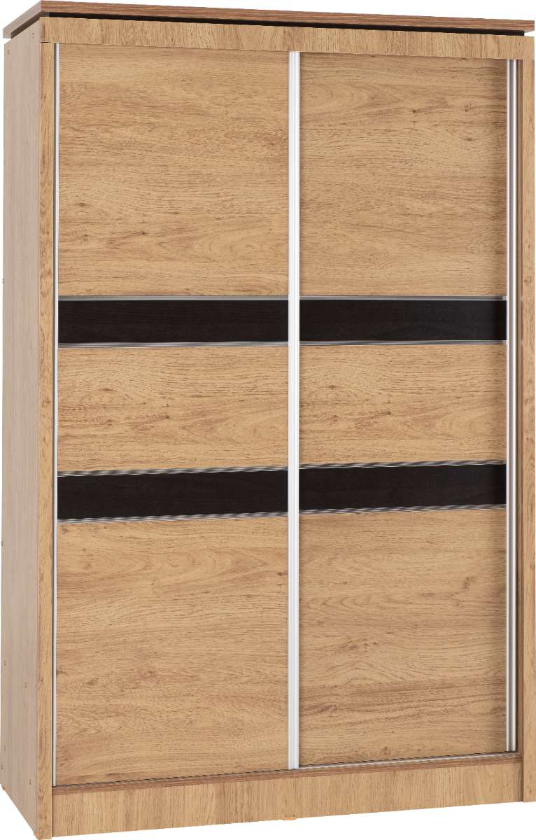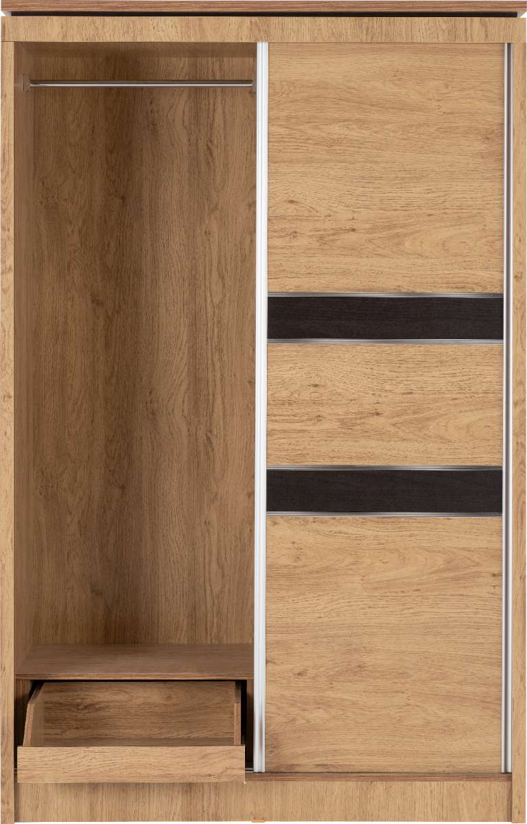 Introducing the Charles 2 Door Sliding Wardrobe, a perfect blend of style and functionality for your bedroom. With its stunning oak effect veneer and elegant walnut trim, this wardrobe adds a touch of modern sophistication to any space.