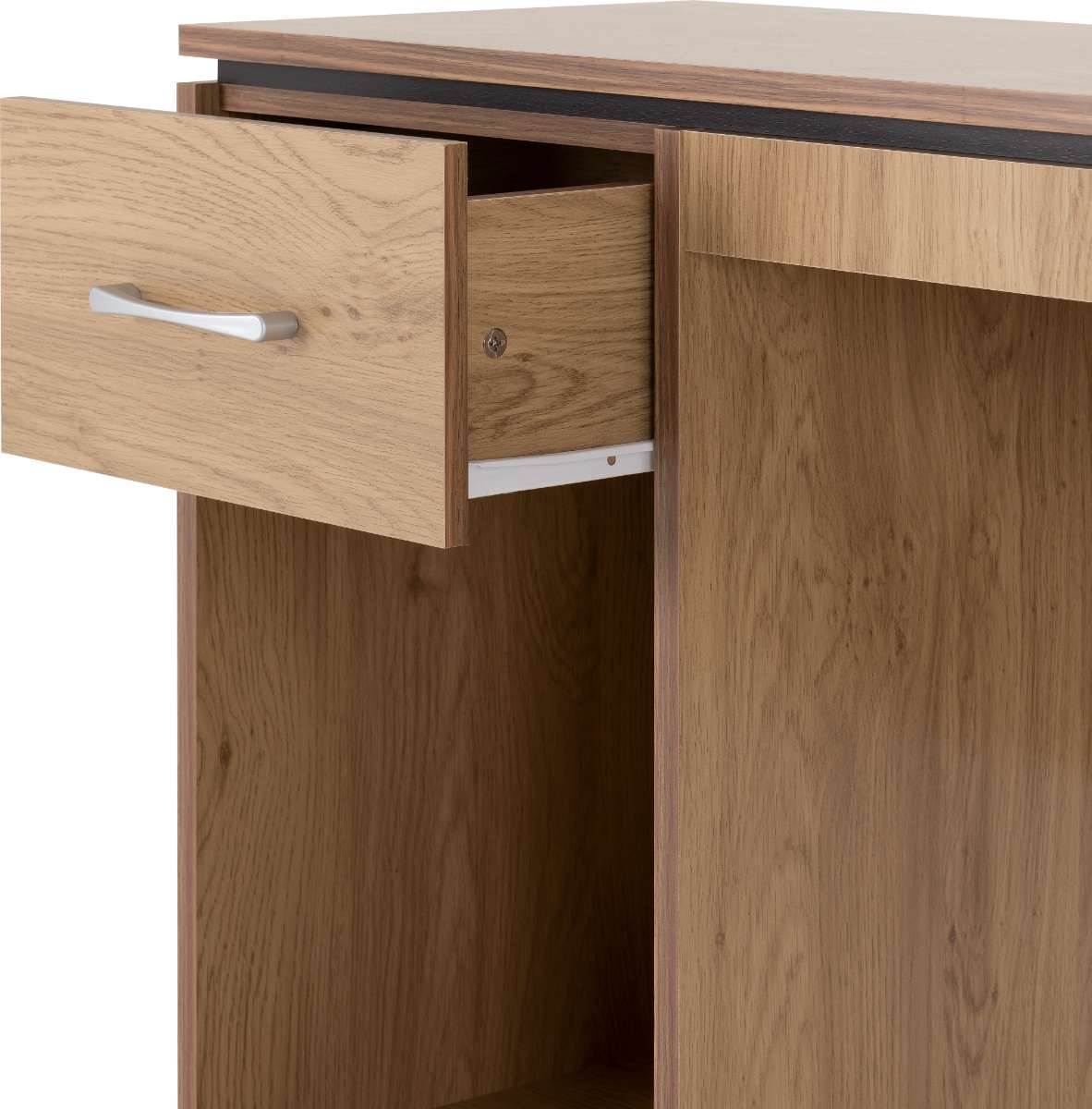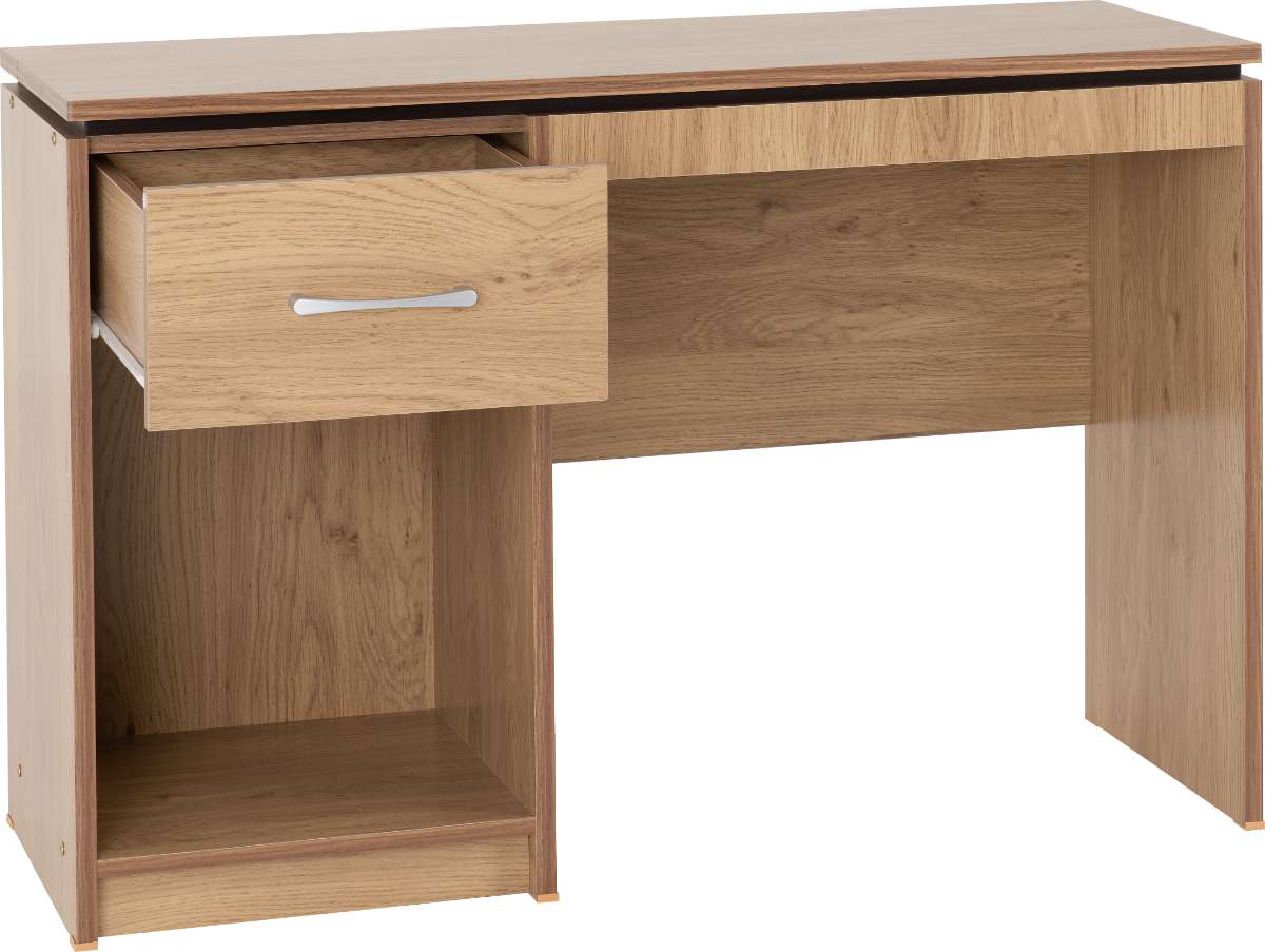 Introducing the Charles Computer Desk, a perfect blend of style and functionality for your workspace. Crafted with an oak effect veneer and accented with rich walnut trim, this desk not only looks great but also offers a sturdy and reliable surface for all your computing needs.