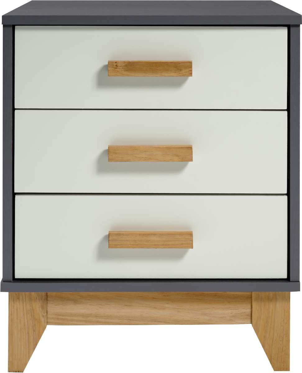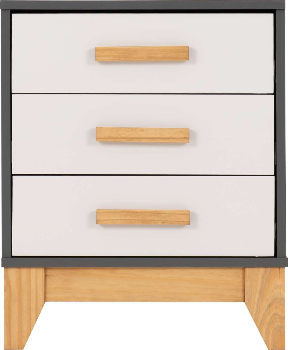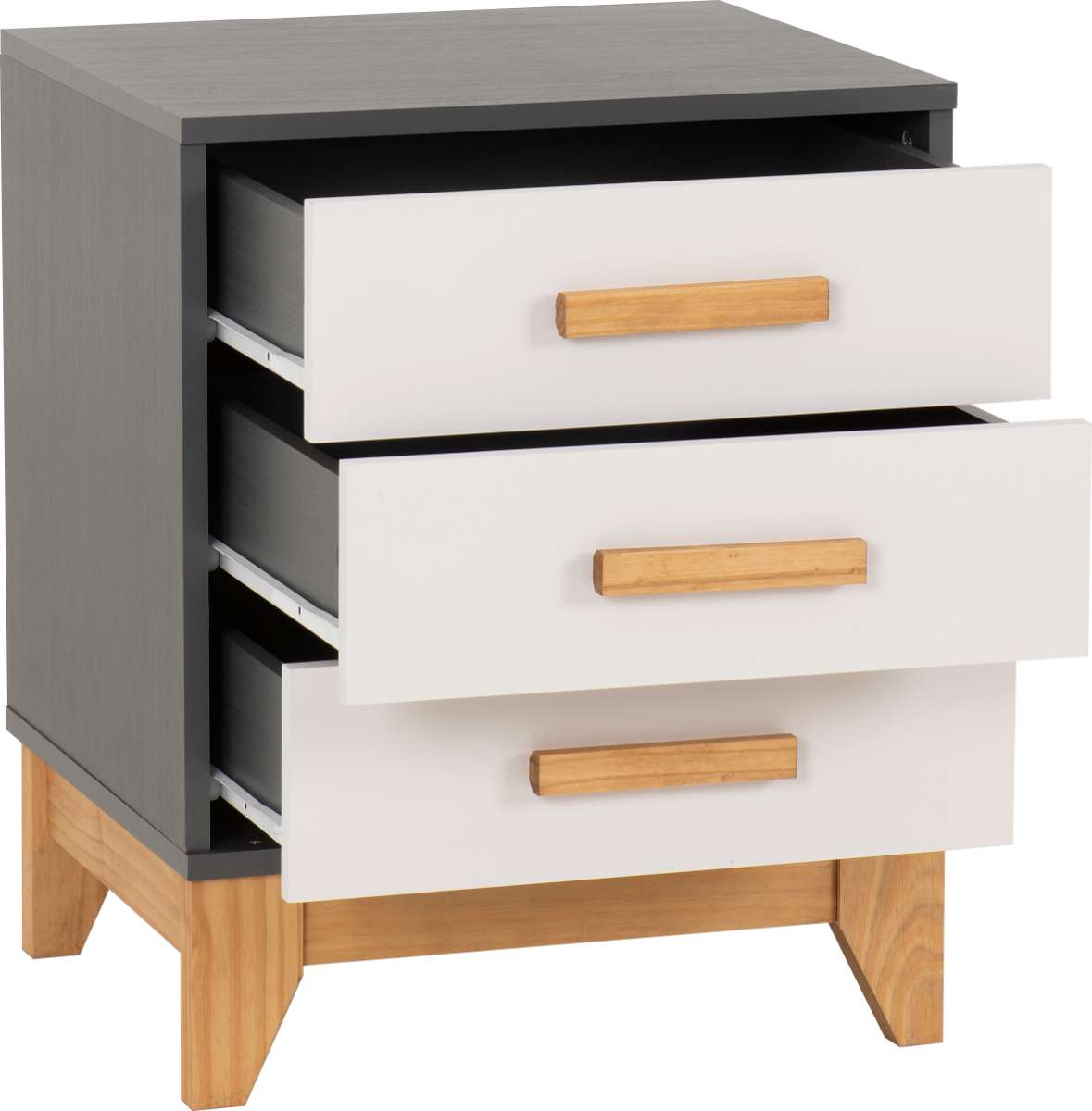 Introducing the Cleveland 3 Drawer Bedside Table, a perfect blend of style and functionality for your bedroom! With its modern white and grey metal effect finish, this bedside table adds a sleek touch to any decor.