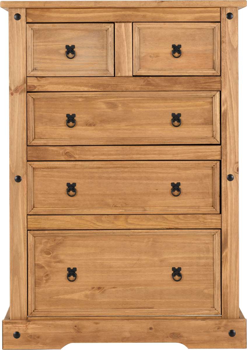 Introducing the Corona 3+2 Drawer Chest, a stylish and functional addition to your home! Made from high-quality distressed waxed pine, this chest combines rustic charm with modern practicality.