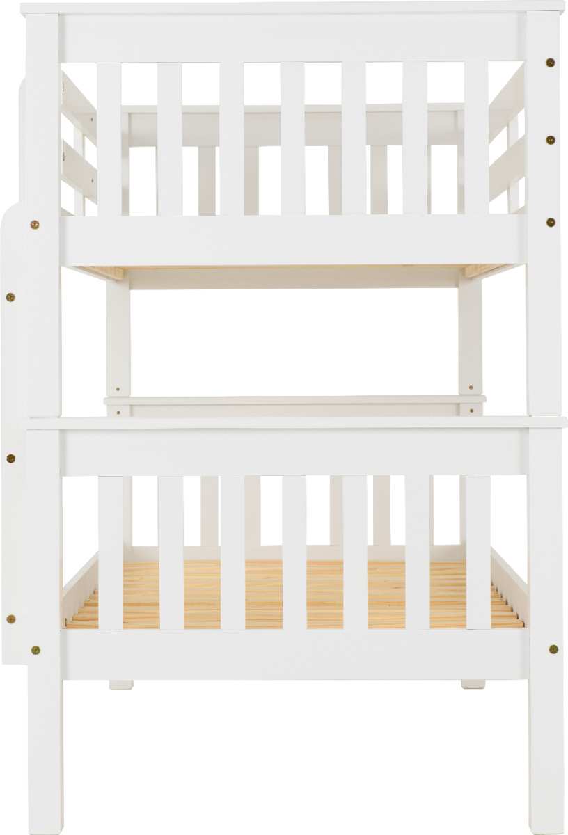 Introducing the Neptune 3' Bunk Bed in a sleek white finish! This stylish and space-saving bunk bed is perfect for kids' rooms, guest rooms, or any space where you need to maximize sleeping arrangements.