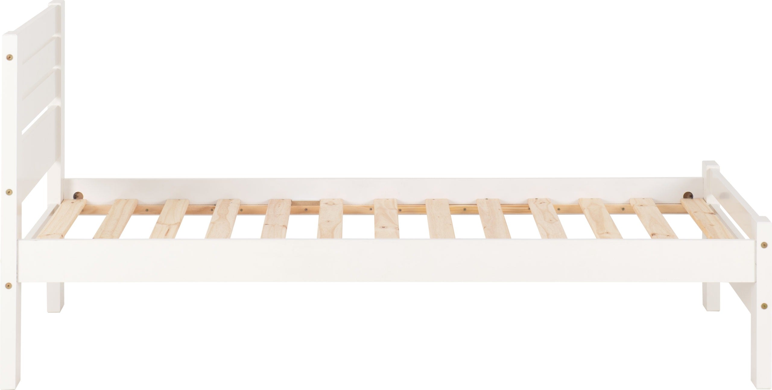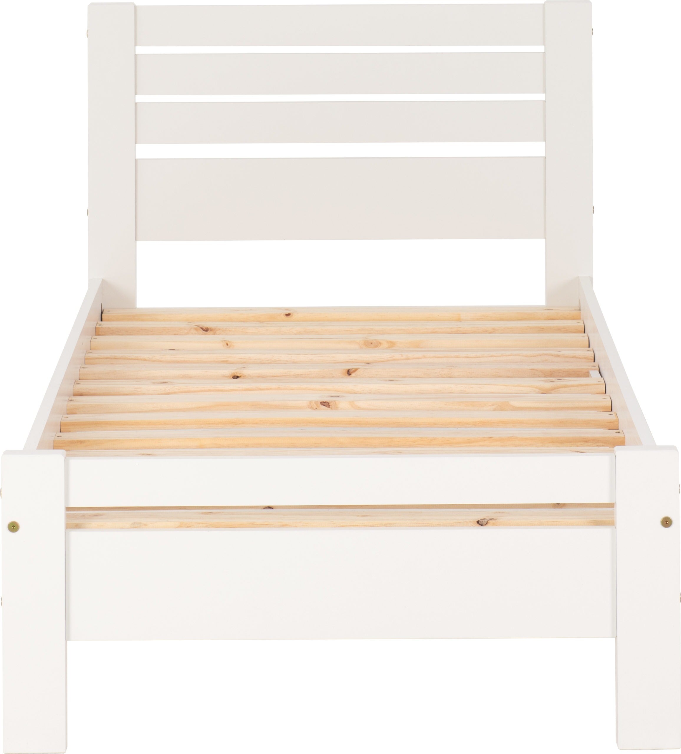 Transform your bedroom with the stylish and versatile Toledo 3' Bed in White. This bed is perfect for smaller spaces or guest rooms, offering both comfort and a modern aesthetic.
